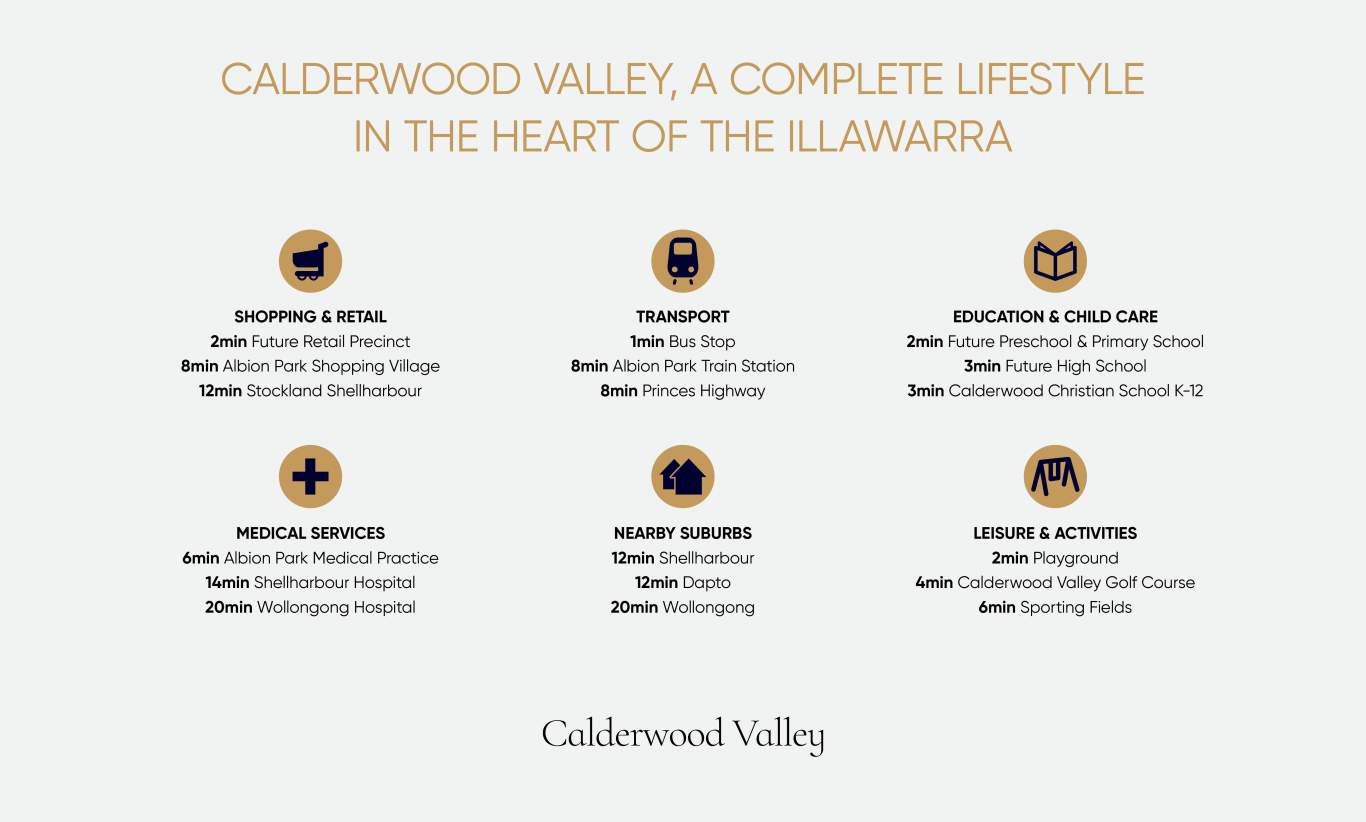 Calderwood Valley has been designed with community, collaboration and connection in mind, offering the conveniences of urban living with the stunning Illawarra escarpment as the backdrop to everyday living.