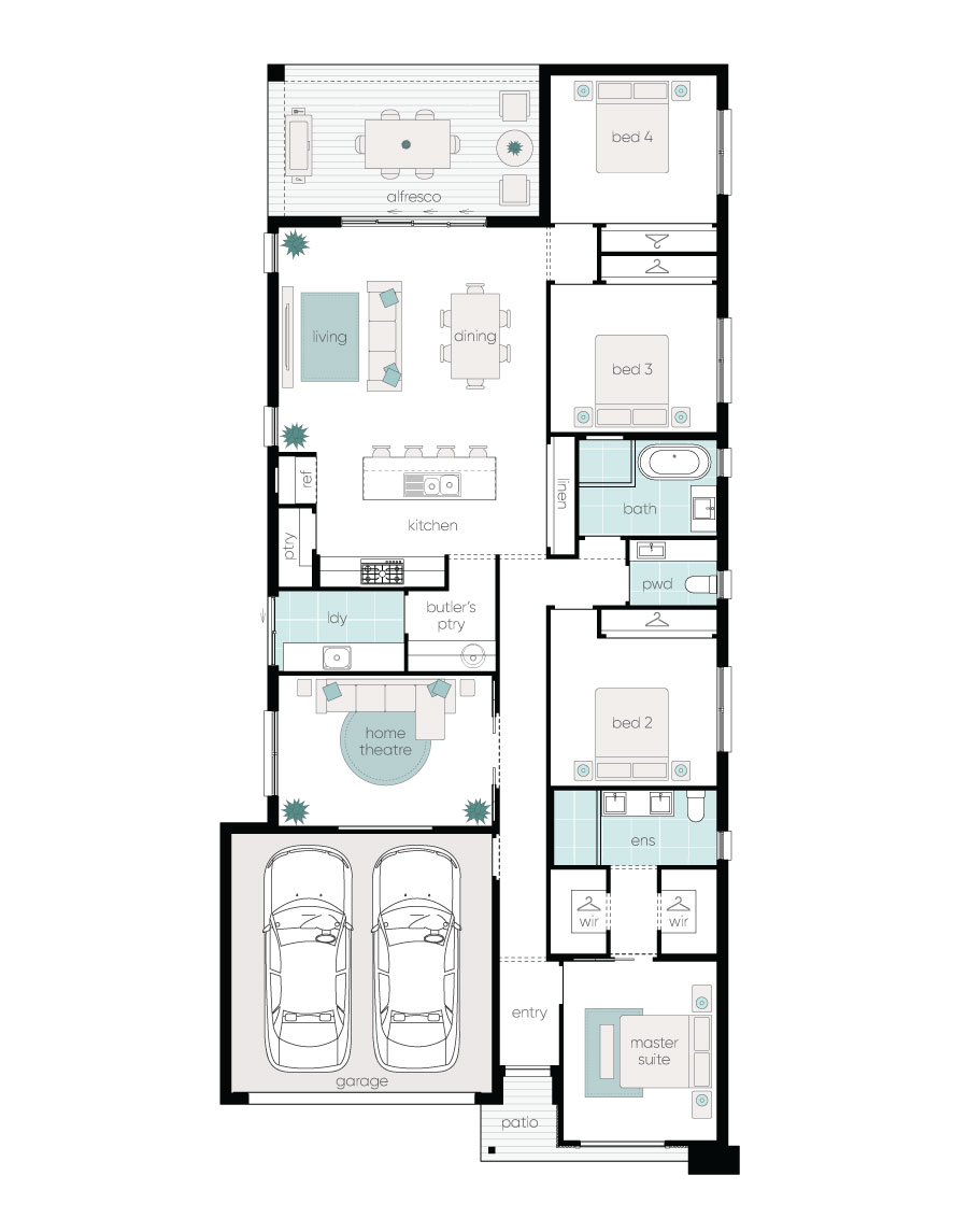 Located on the NSW South Coast, the Oakridge house and land package features 4 bedrooms, multiple living and entertainment areas, walk-in wardrobes and more.