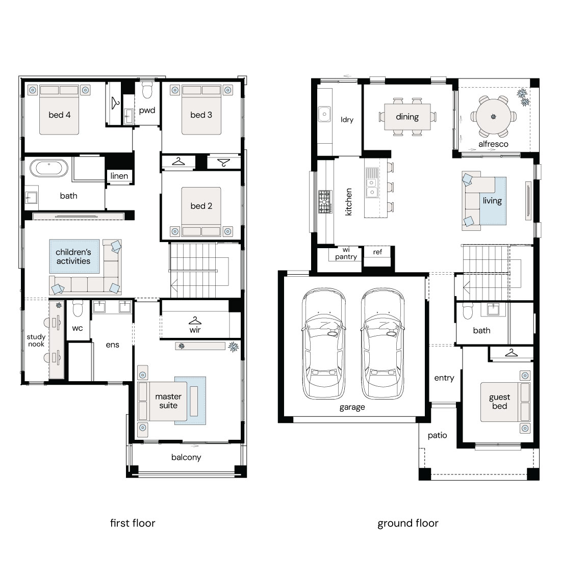 Note: This floor plan is for illustrative purposes only and is subject to change and product substitution. Drawings, renders and materials shown are purely an expression of the artist and may depict details, aesthetics, fixtures, finishes, and features not supplied or offered, or no longer available by Complete, including but not limited to alfresco decking, window and household furnishings and landscaping.