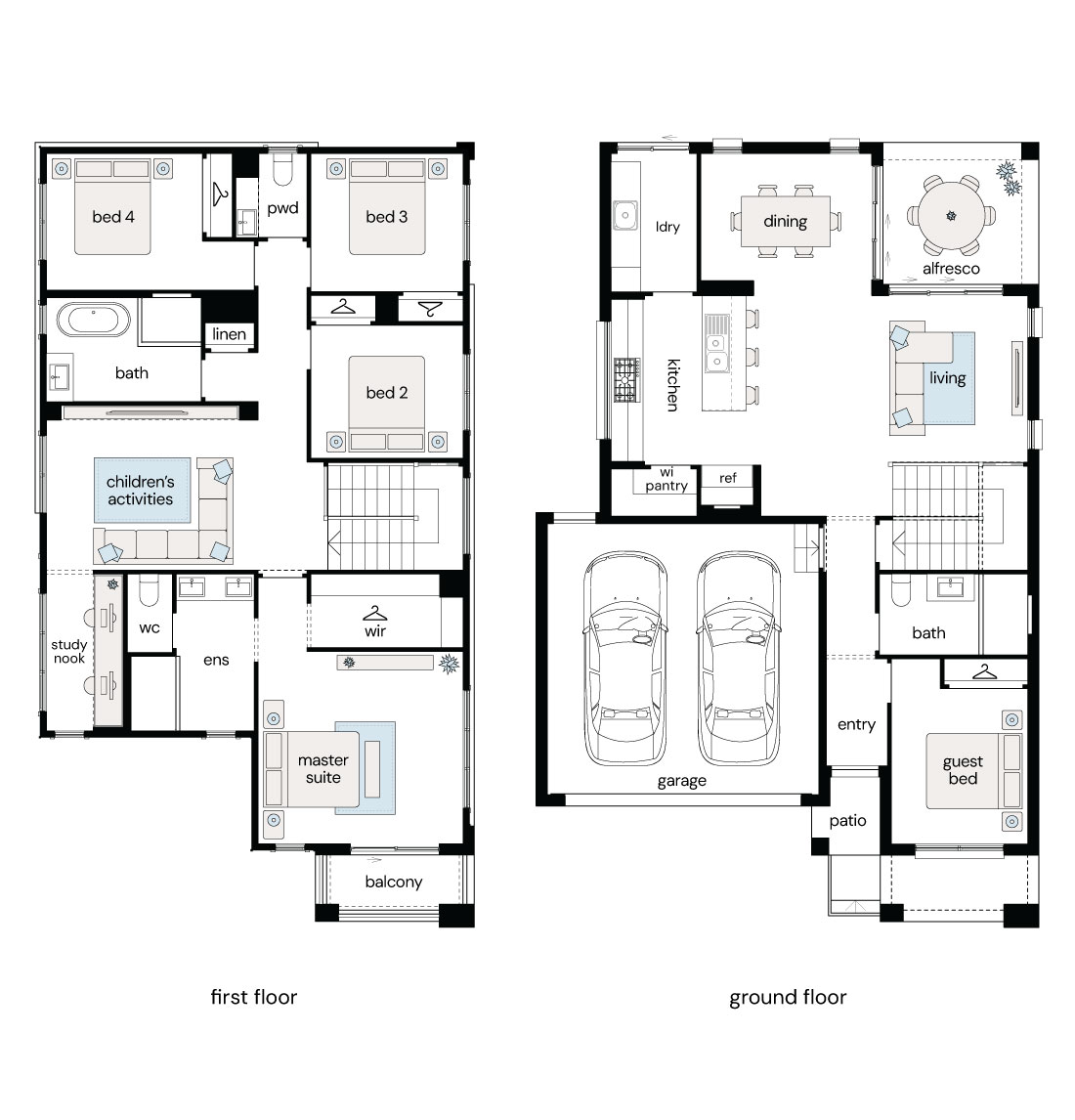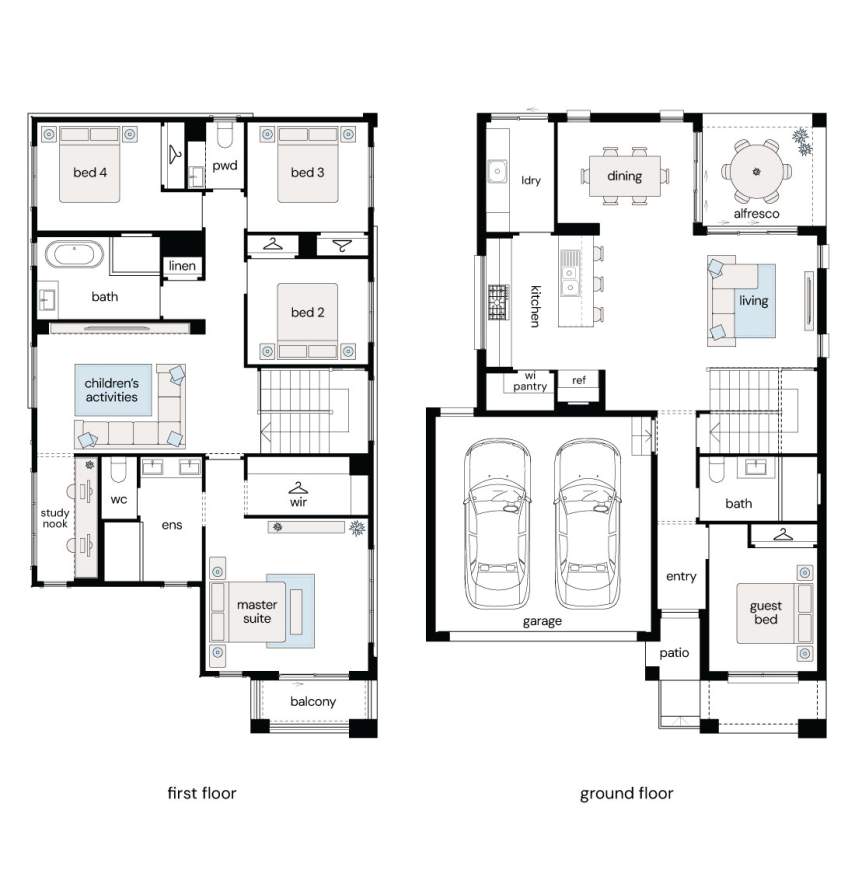 Note: This floor plan is for illustrative purposes only and is subject to change and product substitution. Drawings, renders and materials shown are purely an expression of the artist and may depict details, aesthetics, fixtures, finishes, and features not supplied or offered, or no longer available by Complete, including but not limited to alfresco decking, window and household furnishings and landscaping.