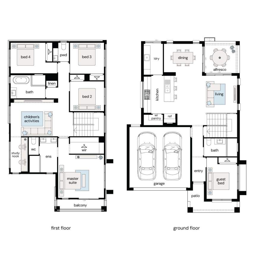 Note: This floor plan is for illustrative purposes only and is subject to change and product substitution. Drawings, renders and materials shown are purely an expression of the artist and may depict details, aesthetics, fixtures, finishes, and features not supplied or offered, or no longer available by Complete, including but not limited to alfresco decking, window and household furnishings and landscaping.