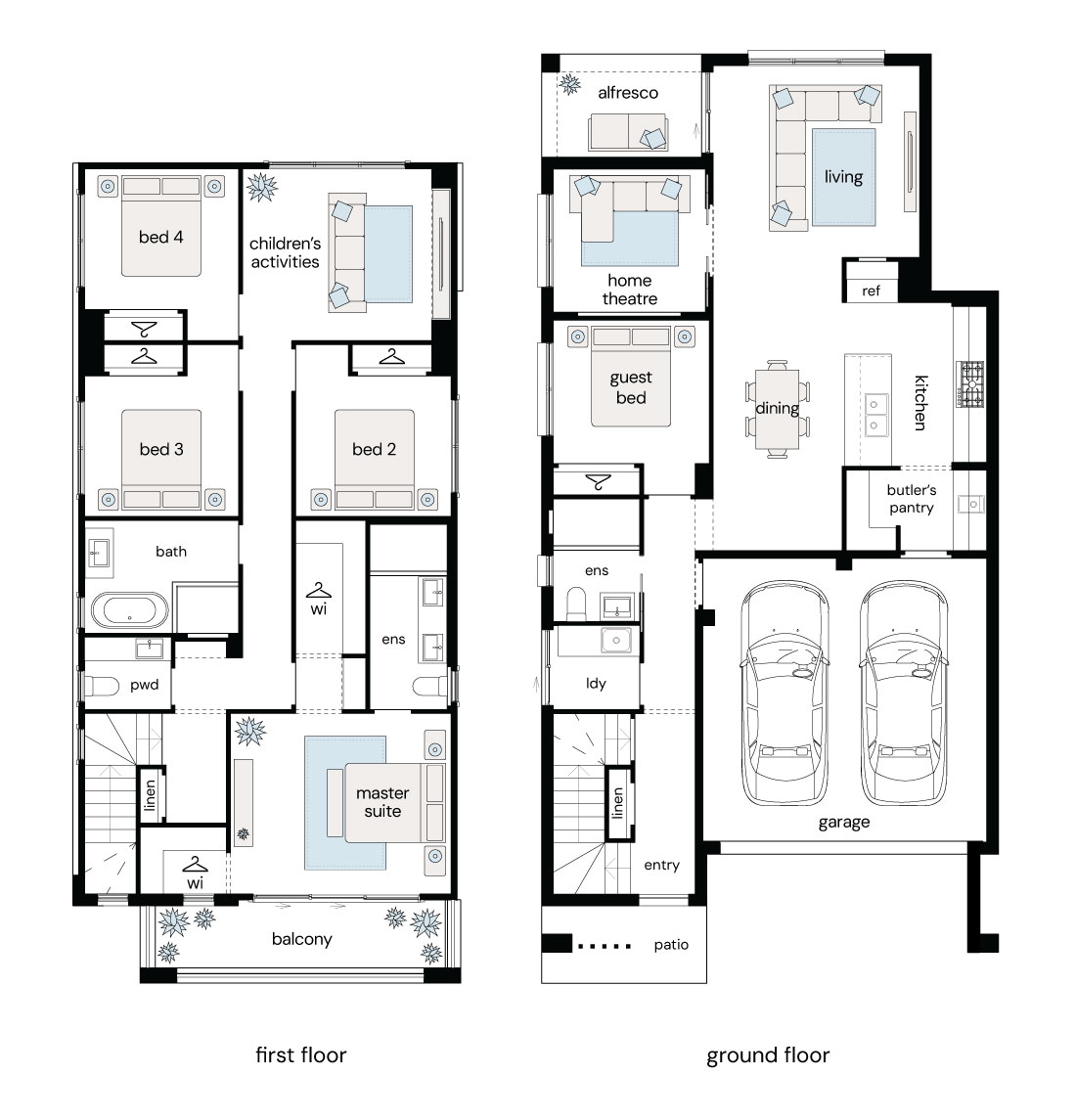 This spacious 5-bedroom floor plan features generous open-plan living areas, designed for quality time spent with family.