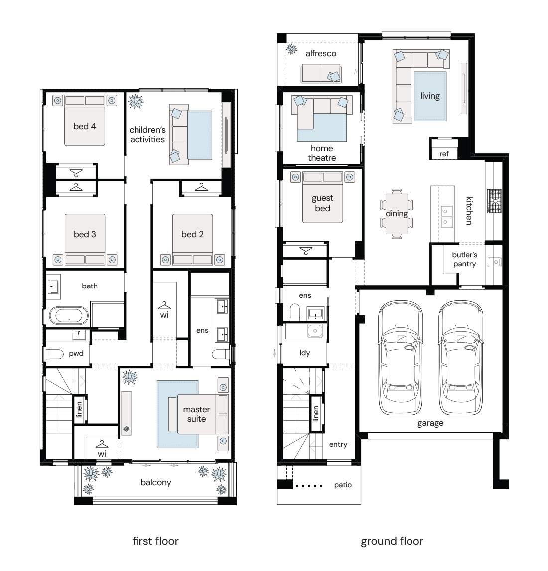 This spacious 5-bedroom floor plan features generous open-plan living areas, designed for quality time spent with family.